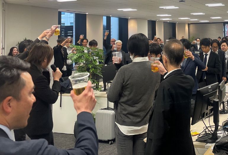 2025年に現在の本社へ移転。社員総会の後にお祝いと懇親会を実施しました。