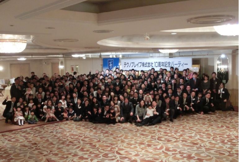 設立10周年の記念パーティー。これだけの社員やご家族がいると圧巻でした!