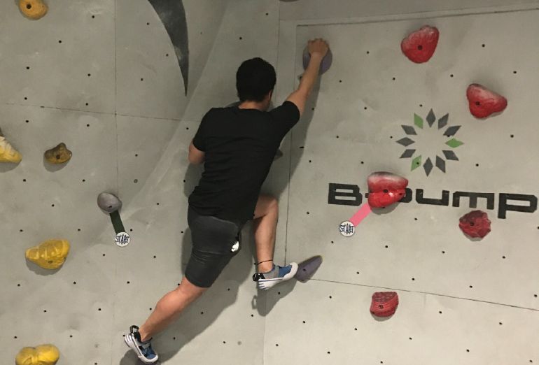 簡単そうで出来ないのがボルダリング。次は足をどこへ?と頭も使いますね。