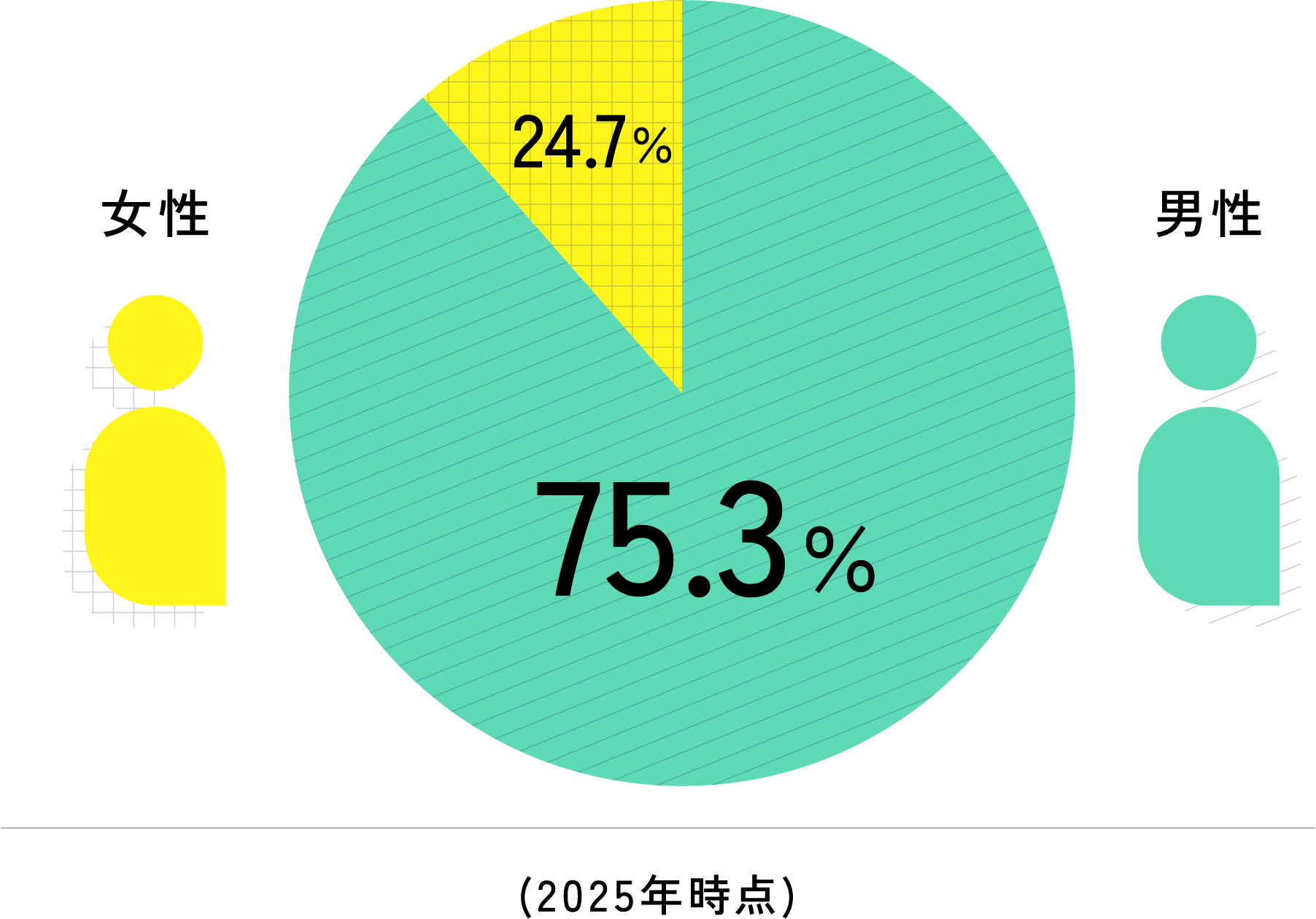 2025年の新卒入社者26名のうち、8名が女性社員。近年は女性の入社比率が増えています。