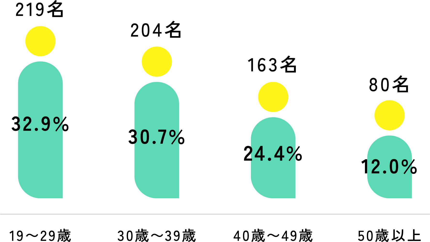 平均年齢は38歳。20代と30代は同じくらいの比率です。